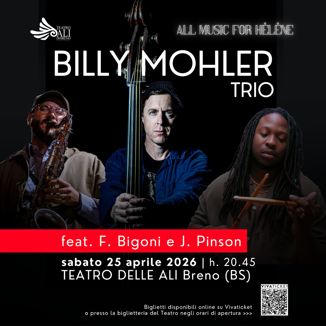 Il secondo appuntamento della programmazione primaverile di All Music for Hélène 2026 è in programma sabato 25 aprile alle ore 20.45, quando il palco del Teatro delle Ali accoglierà il Billy Mohler Trio, una delle proposte più interessanti della scena jazz contemporanea internazionale.