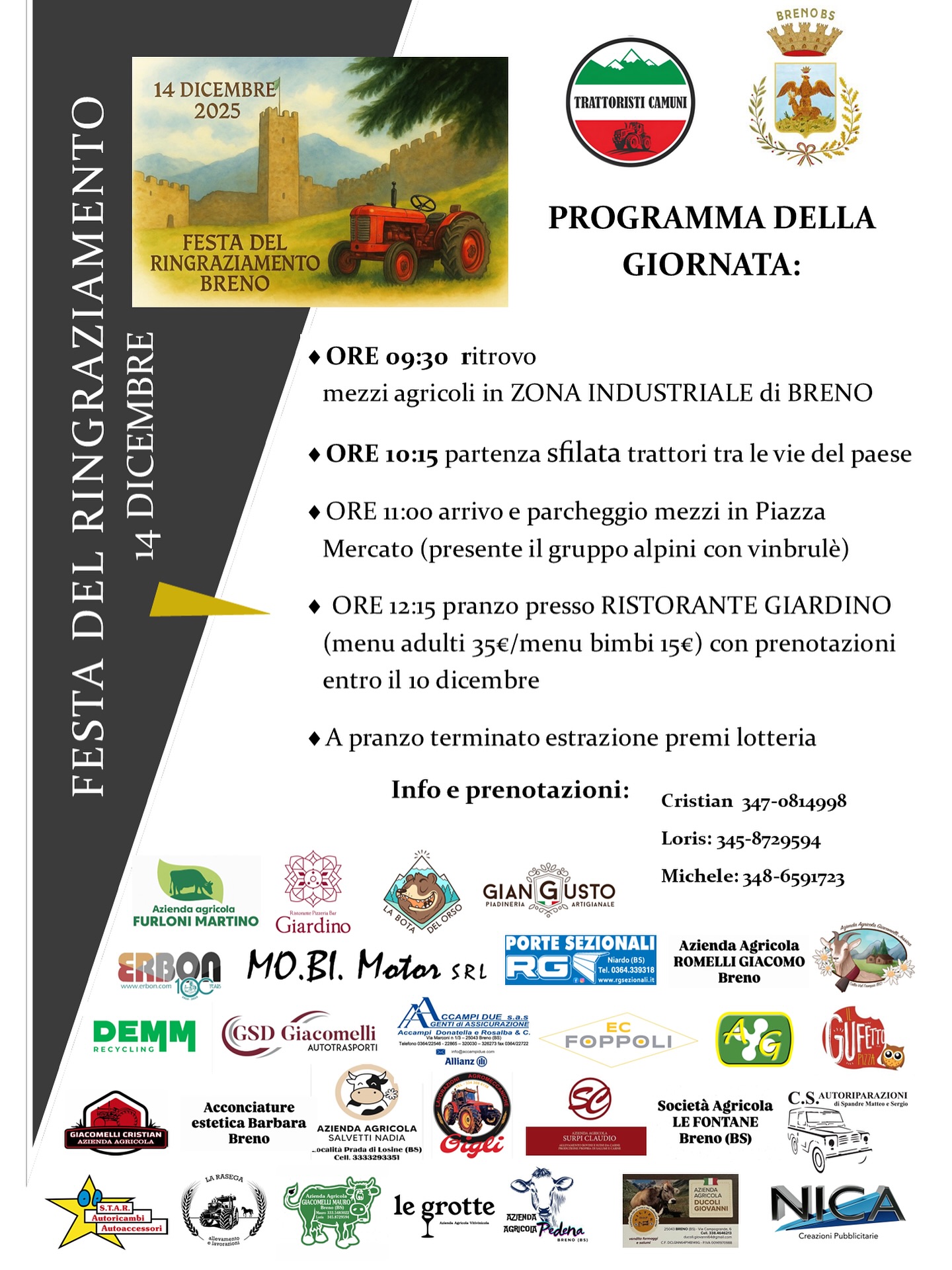 Festa del ringraziamento con sfilata di mezzi agricoli per le vie del paese.