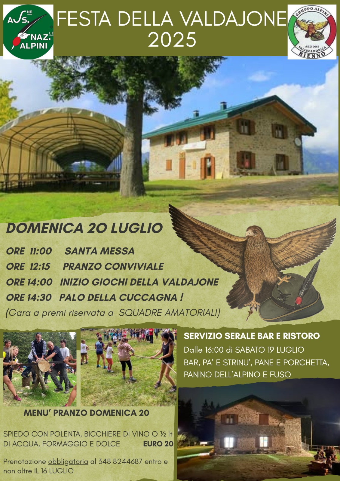 Il programma della giornata prevede Santa Messa, pranzo conviviale e a seguire giochi per i bambini.