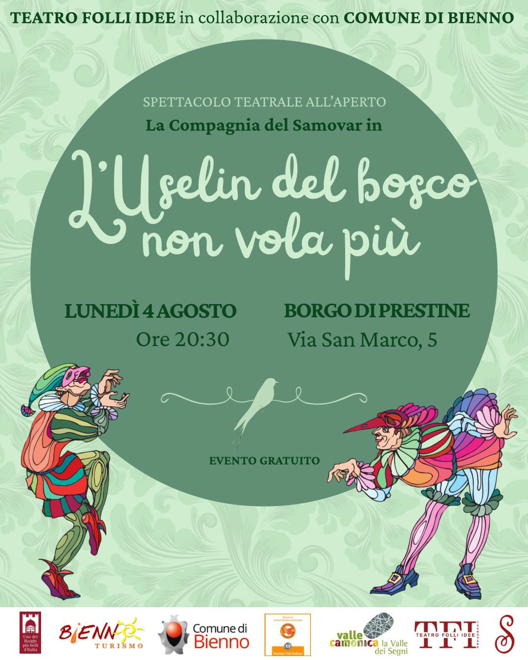 Presso il Borgo di Prestine si terrà lo spettacolo teatrale all’aperto intitolato L’Uselin del bosco non vola più, in collaborazione con il Teatro Folli Idee – Compagnia del Samovar.
