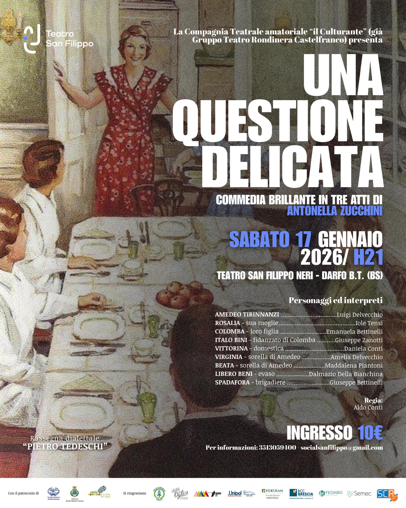 Sabato 17 gennaio alle 21.00 va in scena “Una questione delicata”, commedia dialettale in tre atti della Compagnia Il Culturante.